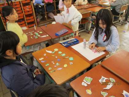 今日は、友だちと英語でやり取りをしながら、オリジナルサラダを作りました。