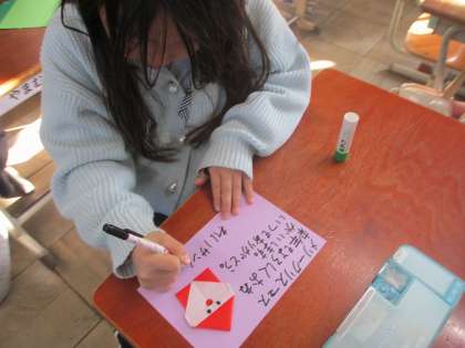 道徳「だれかのサンタになろう」の学習をしました。だれかの喜ぶ顔を思い浮かべながら、心をこめてサンタカードを作りました。家族や友達に…こっそり届けられましたか?(「けんこうとあんぜんに気をつけて、じゅうじつした冬休みをすごすんじゃよ。」うめきたサンタより)