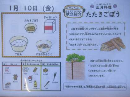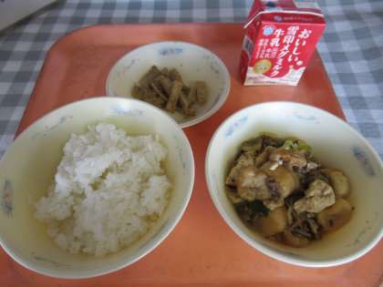 ごはん、牛乳、すきやき風煮、たたきごぼう