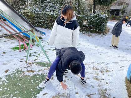 休み時間に雪遊びをしました。久しぶりに積もった雪に子どもたちは大喜びでした。