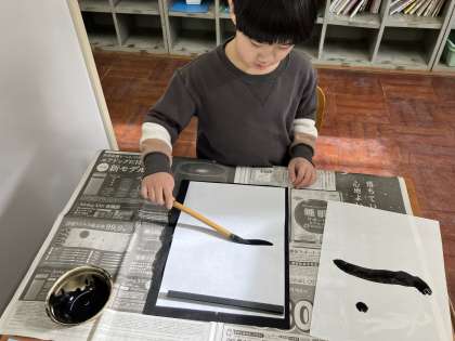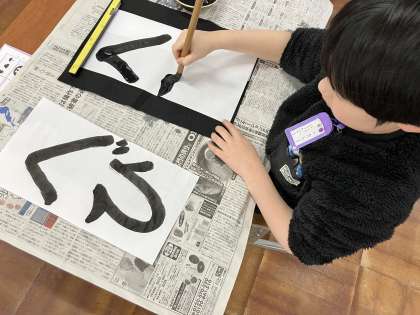 書き初めをしました。みんな真剣な表情で取り組んでいました。