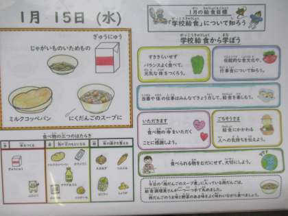 ミルクコッペパン、牛乳、肉だんごのスープ、じゃがいものいためもの