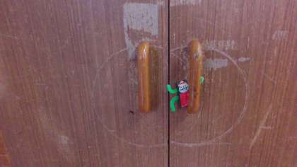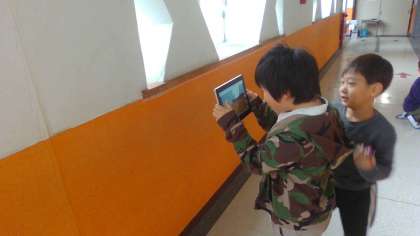 図画工作科の学習ですきまちゃんを作り、お気に入りの場所において、写真を撮りました。