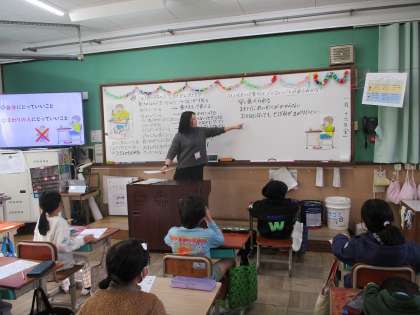 栄養教諭の先生に、給食時間の過ごし方について食の指導をしてもらいました。