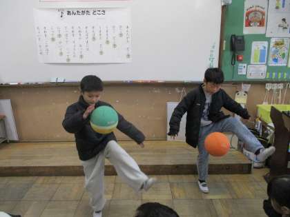 ボールをつきながら、足の下を通すのは思ったよりも難しかったようです。