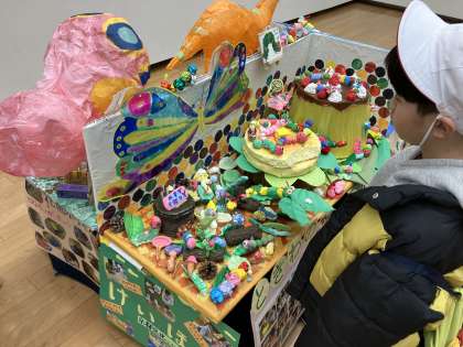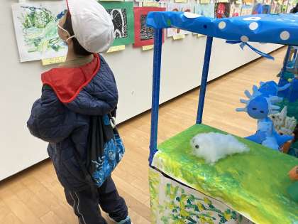 自分たちの作品だけでなく、ほかの学校の人たちの作品にも興味をもって鑑賞していました。