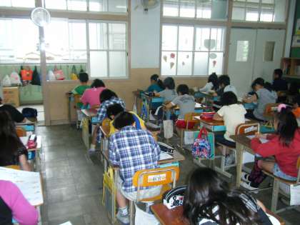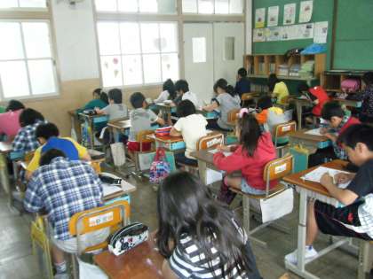 『1けたでわるわり算の筆算』のテストを行いました。教室にはピーンと張りつめた空気が流れていました。何度も何度も問題を見かえし,間違いがないか,チェックしている姿が印象的でした。
