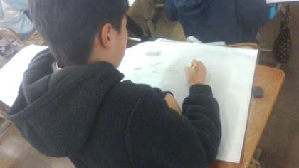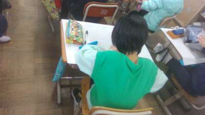 5年生の思い出や自分の好きなものを自由にかいていました。