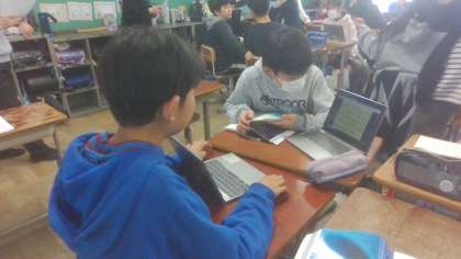 主人公の考え方や生き方について考えました。他の登場人物との関わりに着目し、交流することで深めていました。