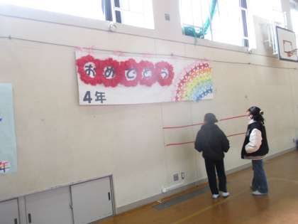 各学年が作ってくれたすてきな掲示を、じっくり子どもたちは見ていました。あたたかい雰囲気ですてきな会を開いて頂き、本当にありがとうございました。