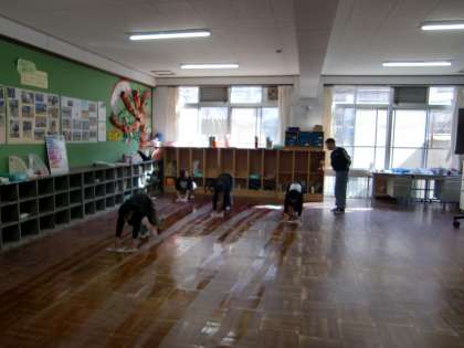今日はこれまで使った教室をみんなで大掃除しました。机の脚や椅子の脚をふいたり、床拭きをしたりとすみずみまで綺麗にしました。みんなで協力してピカピカにすることができました!