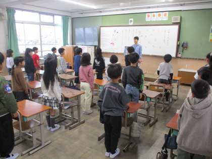 今日は教室で気持ちのよい挨拶からスタートしました。子どもたちは、姿勢よく先生の方を見て挨拶をしていました。