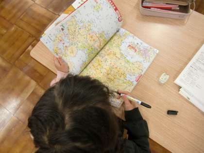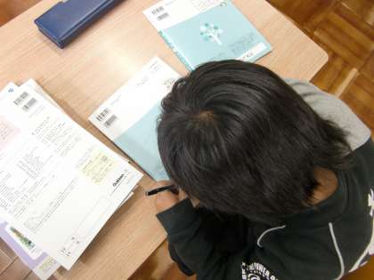 学年が1つ上がり、どんな学習をするのか教科書を見ました。新しい学習にワクワクしながら、教科書に名前を書いていました。
