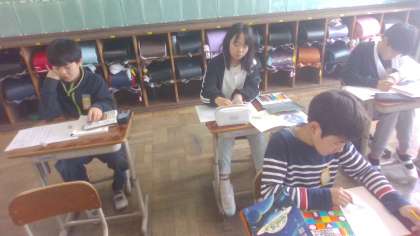 国語の一番最初のページ「銀河」を音読し、視写しました。教室や階段に掲示していますので、ぜひ参観日にご来校の際にご覧ください。