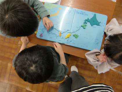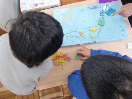 社会科の学習では、都道府県について学習しています。今日は日本地図パズルをして、何県があるのか、日本にはいくつの県があるのかを知ることができました。