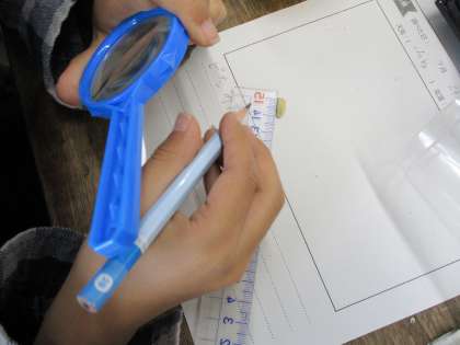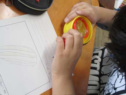 理科の学習でヒョウタンの種を観察しました。定規を使って長さを測ったり、ほかの種と比べたりしながら観察していました。