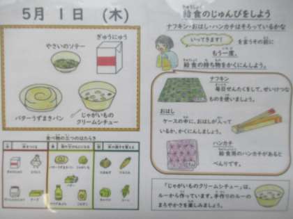 バターうずまきパン、牛乳、じゃがいものクリームシチュー、野菜のソテー