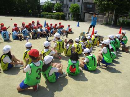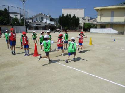 待っている子どもたちから、応援の声が運動場に響き、みんなで楽しく体育の学習ができました。