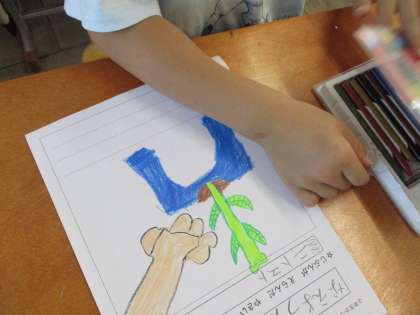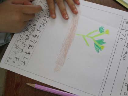 最後に観察カードにミニトマトの苗の様子を絵と言葉で書きました。