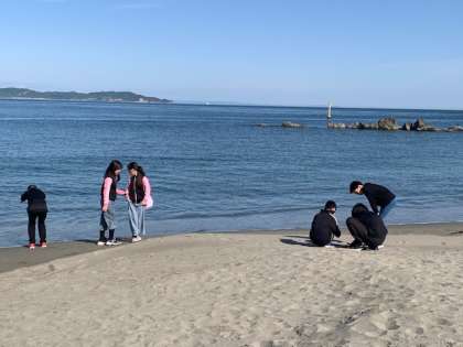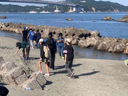 大塚国際美術館を出て鯛丸海月に向かいました。部屋に入る前に砂浜に行きました。海を眺めながらのんびりした時間を過ごしました。