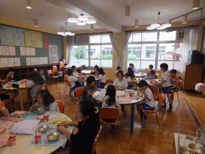 ランチルームでの給食を食べました。