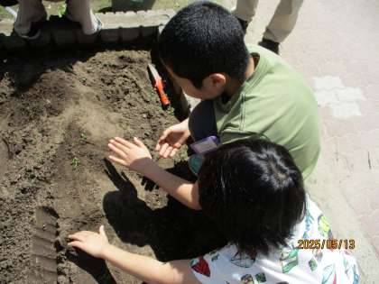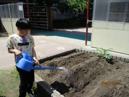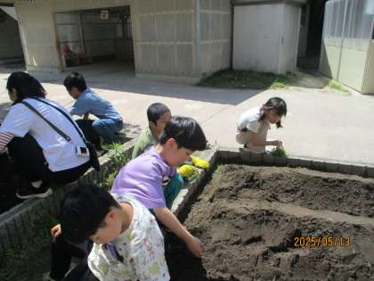 生活単元の学習では、畑をきれいにし大豆とイエローポップを植えました。子どもたちは野菜ができるのをとても楽しみにしていました。これからみんなで大切に育てていきたいと思います。