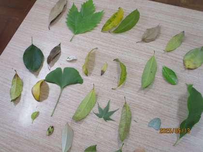 今日は図画工作科の学習ではお気に入りの葉を見つけました。いろいろな葉を見つけて色が違うことや、触った感じが違うことなど気付いたことを伝えていました。