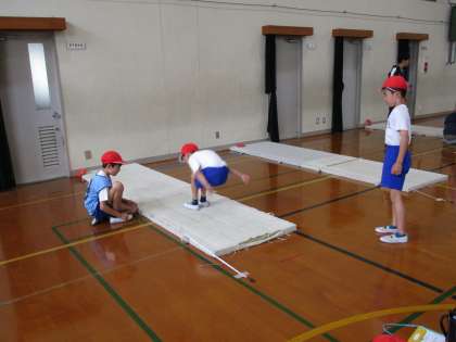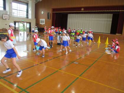 体育の学習で、体力テストを行いました。5年生に計測を手伝ってもらいました。子どもたちは、どの種目も一生懸命に取り組んでいました。
