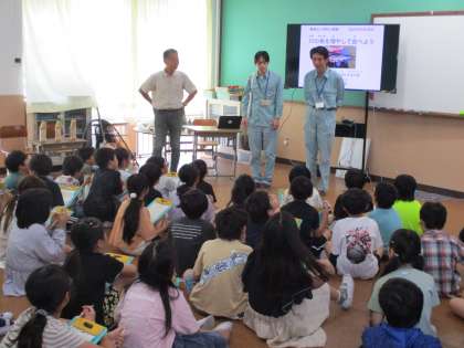 総合的な学習の時間に「京の川の恵みを活かす会」代表の方にお話を伺いました。「川の魚を増やして食べよう」というテーマで、コイやアユ、マスなどのお魚や食べ方について話していただき、子どもたちは興味津々に聞いていました。