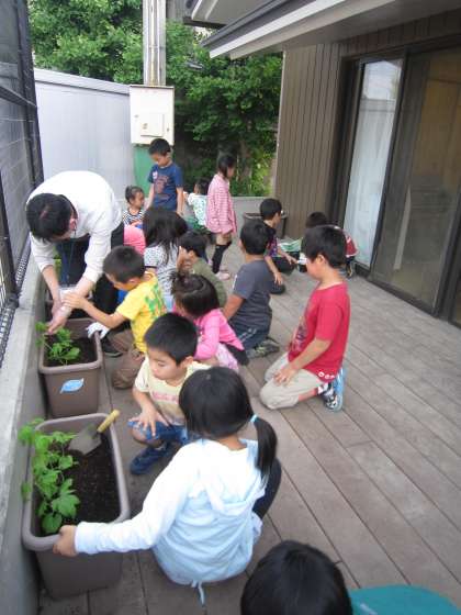 児童館のテラスに植えていますので、みんなで植えた植物たちがすくすく育つようにみていて下さいね。