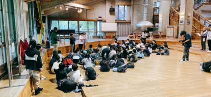無事に花背山の家に着きました。入所式をしています。