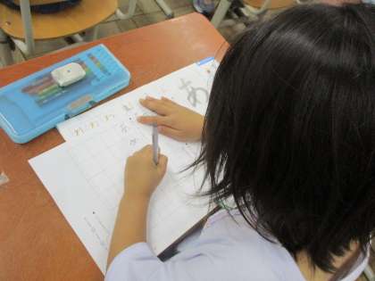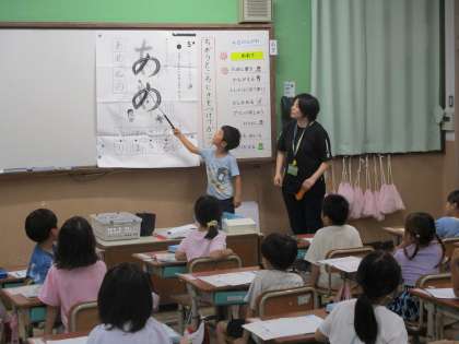 書写の学習では、ひらがなを書きました。お手本を見て、一生懸命書いていました。これからも丁寧に書き続けてほしいです。