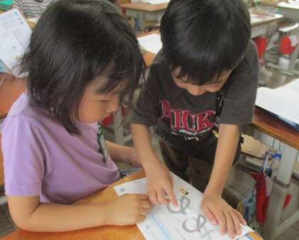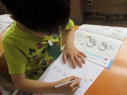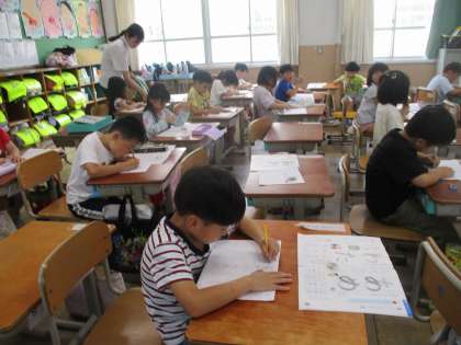 書写「にているひらがな」の学習では、形が似ている平仮名について、似ているところや違うところに気をつけて書くことができました。