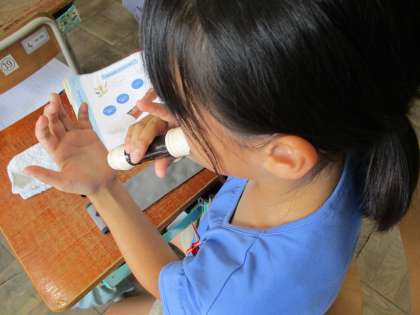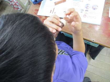 音楽科の学習で、リコーダーのヘッドピース(頭部管)と息を使って、音遊びをしました。ウィンドウの部分やミドルピース(中部管)とつなぐ部分を閉じたり開けたりして、いろいろな音を出してみました。