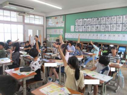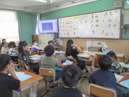 外国語活動U3「I like Mondays.」の学習では、曜日の言い方や、Do you like〜?Yes,I do./ No,I don't.」などの表現を聞くことに慣れ親しんだり、自分が好きな曜日について、相手が好きかどうかを尋ねたり答えたりする活動をしました。