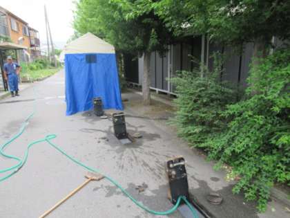 今日は校舎西側にある災害用トイレの設置もされ、地域に方に見ていただきました。