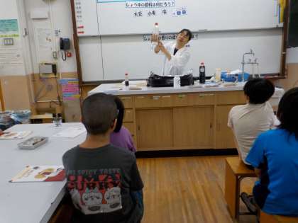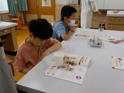 今日は『しょうゆ博士』をゲストティーチャーにお迎えし、「しょうゆは何を使って作られるのか」「どのようにして作られるのか」等たくさんの事を教えてもらいました。