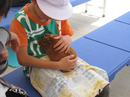 どうぶつのふれあい学習では,てんじくねずみとうさぎを触りました。子どもたちはまるで割れ物に触れるかのように,大事に大事に触っていました。