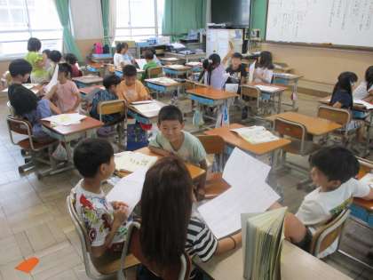国語科の学習で、お気に入りの本を紹介しました。子どもたちは「話し方名人」や「聞き方名人」のポイントを確かめながら、紹介し合っていました。