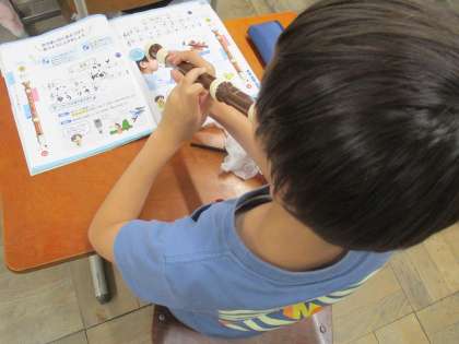 音楽科の学習で、高い「ド」と「レ」の音をリコーダーで吹きました。タンギングや息の使い方に気を付けて「坂道」「雨上がり」という曲を演奏しました。