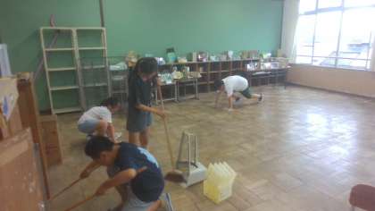 気合いを入れて教室やフリースペースの掃除をしました。いつも頑張ってくれていますが、いつも以上にピカピカになりました!