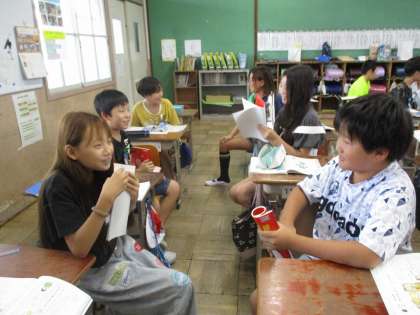 国語科も交換授業をしています。場面絵から役割演技をしました。姉に「もうすぐ友達が来るから、早く片付けてよ。」「どうしてこんなに散らかしているの。」と怒られた弟が、「散らかしているんじゃなくて、今片付けているんだよ。」と必死に伝えていました。「どうしたら、弟がいやな思いをしなかったか?」をみんなで考えてみました。
