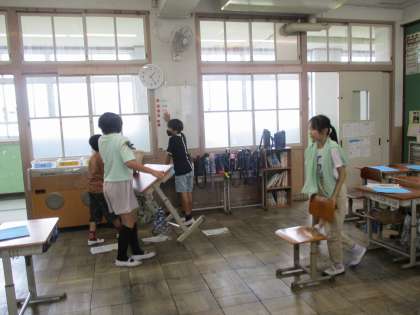そうじ時間の様子です。自分の担当場所をしっかり清掃する姿が見られました。また、休みの人がどこの掃除場所かを確認し、助けに動く姿も見られました。よく周りを見れているな、と感心しました。