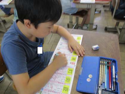 毎日、新出漢字の学習をしています。丁寧な字が書けていました。