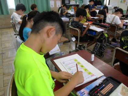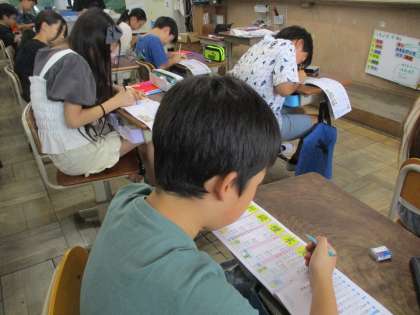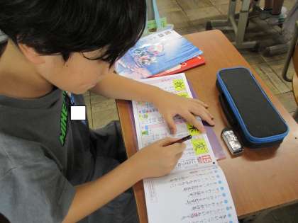 毎日、漢字の学習をしています。フラッシュカードでの練習では、読み方を元気よく答えていました。