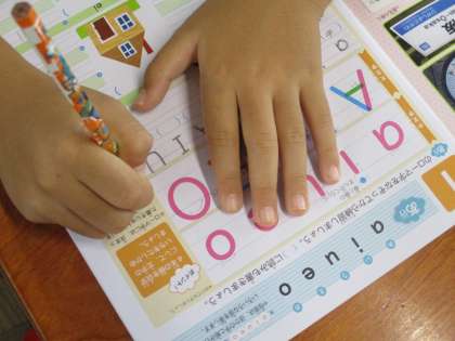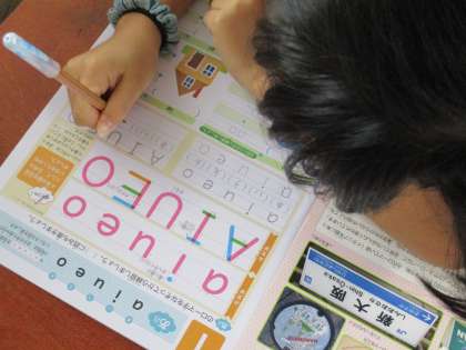 ローマ字の学習が始まりました。今日は「あ・い・う・え・お」の書き取りを行いました。