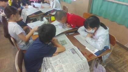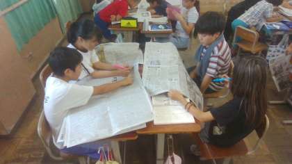国語で「新聞を読もう」という学習をしています。今日は、一面にどんなことが書かれているのかを調べました。