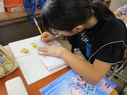 漢字の学習の様子です。書き順を確かめた後に、繰り返し練習をしました。宿題でも、復習を頑張ってください。コツコツと力をつけていきましょう!