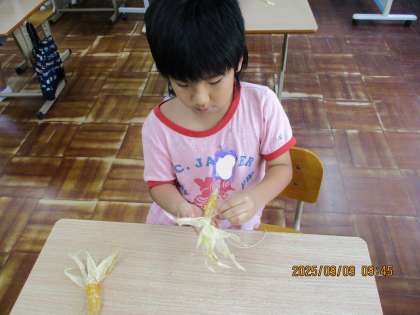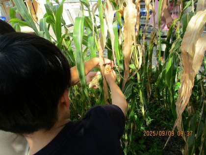 生活単元の学習でイエローポップの収穫をしました。「ポップコーン作りたいな。」「バター味がいいな。」とポップコーンを作ることに楽しみながら収穫していました。