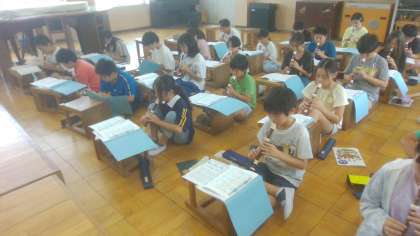 リコーダーや歌唱を頑張っています。歌唱では、和音によってポーズを変えて歌いました。